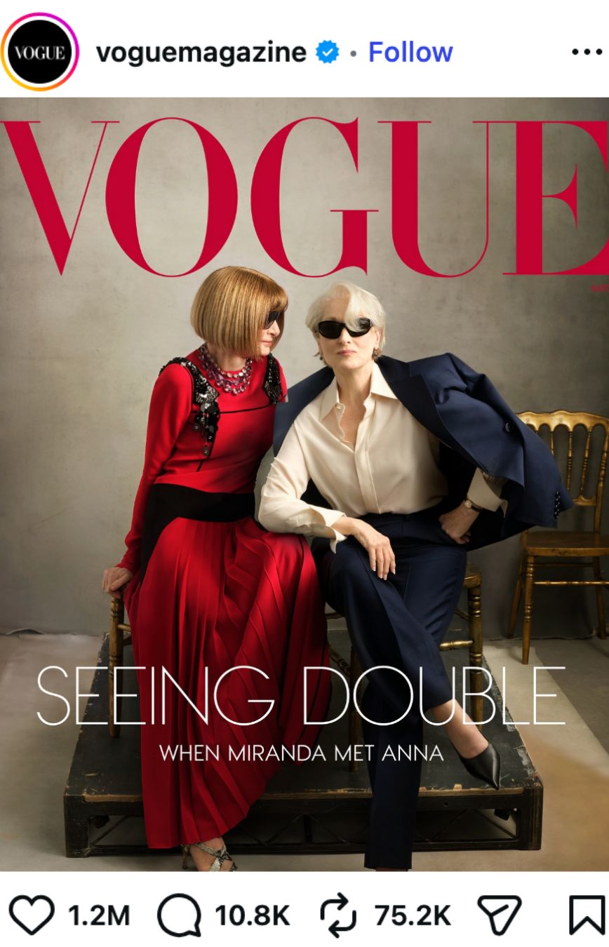 💅 Vogue’s cover for this month is a tribute to “when Miranda met Anna” – if you know, you know!