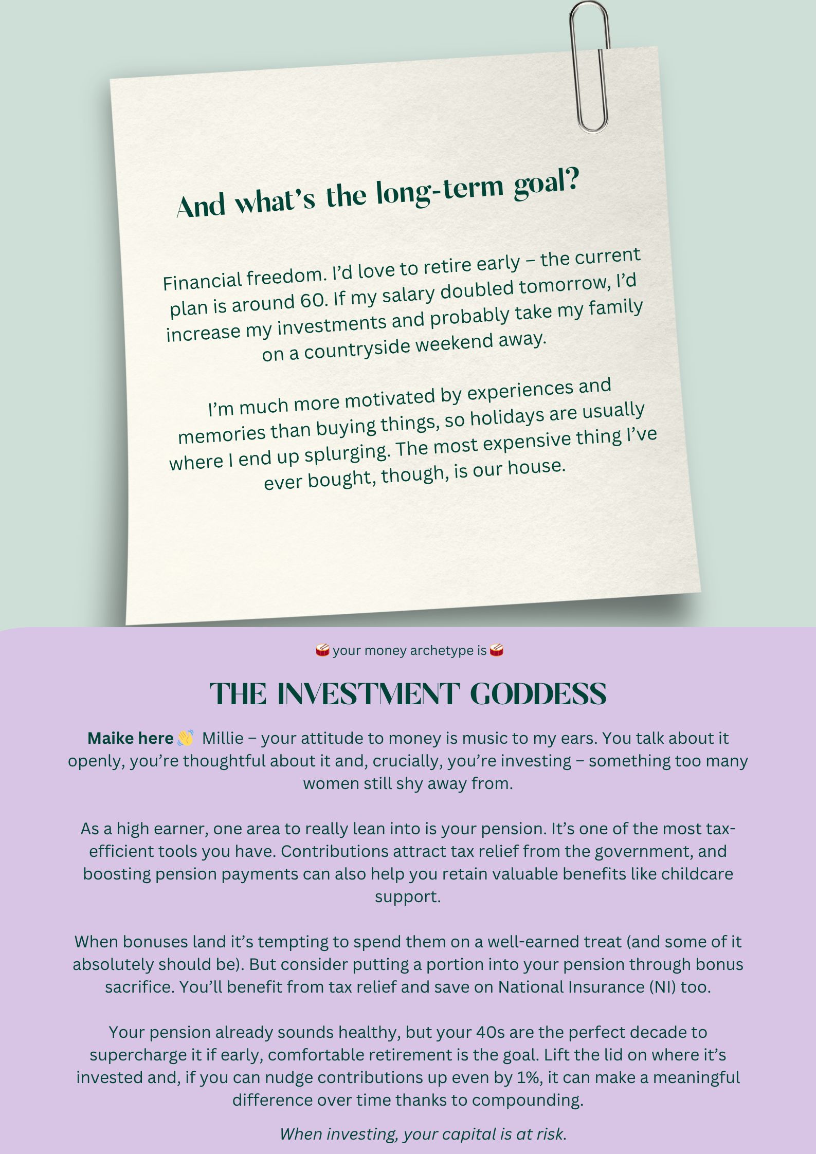 Welcome to Money Archetypes – a new series lifting the lid on the often mysterious world of money. Each week, someone from our community shares their real-life numbers, habits and goals – the good, the messy and everything in between – because there’s no one “right” way to do finances. We’ve partnered with Maike Currie, an advocate for improving women’s financial resilience and VP Personal Finance at PensionBee, to help us out. Anything discussed should not be regarded as financial advice and as always with investing, your capital is at risk.