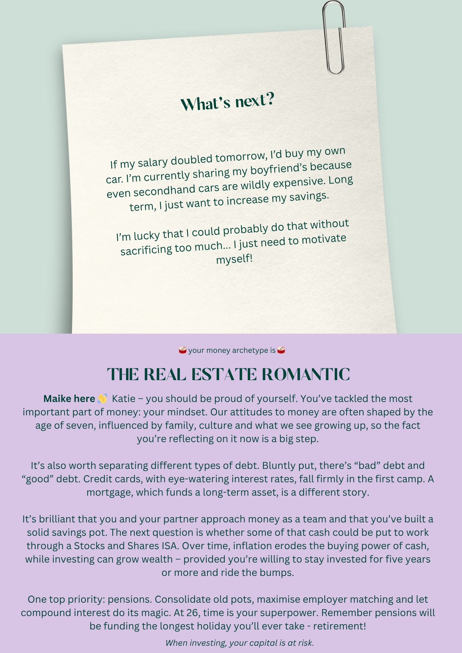 Welcome to Money Archetypes – a new series lifting the lid on the often mysterious world of money. Each week, someone from our community shares their real-life numbers, habits and goals – the good, the messy and everything in between – because there’s no one “right” way to do finances. We’ve partnered with Maike Currie, an advocate for improving women’s financial resilience and VP Personal Finance at PensionBee, to help us out. Anything discussed should not be regarded as financial advice and as always with investing, your capital is at risk.